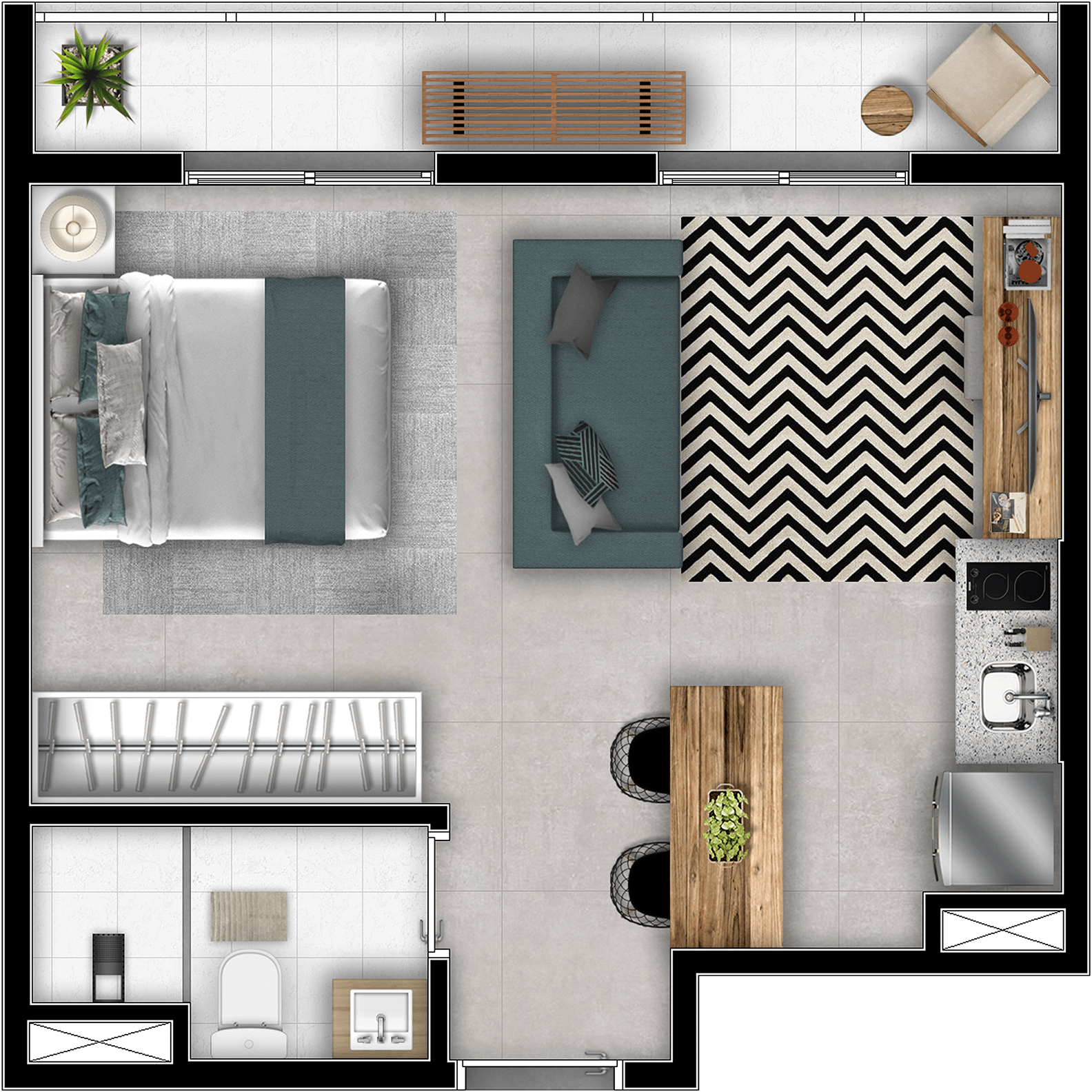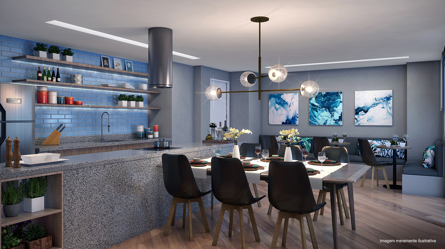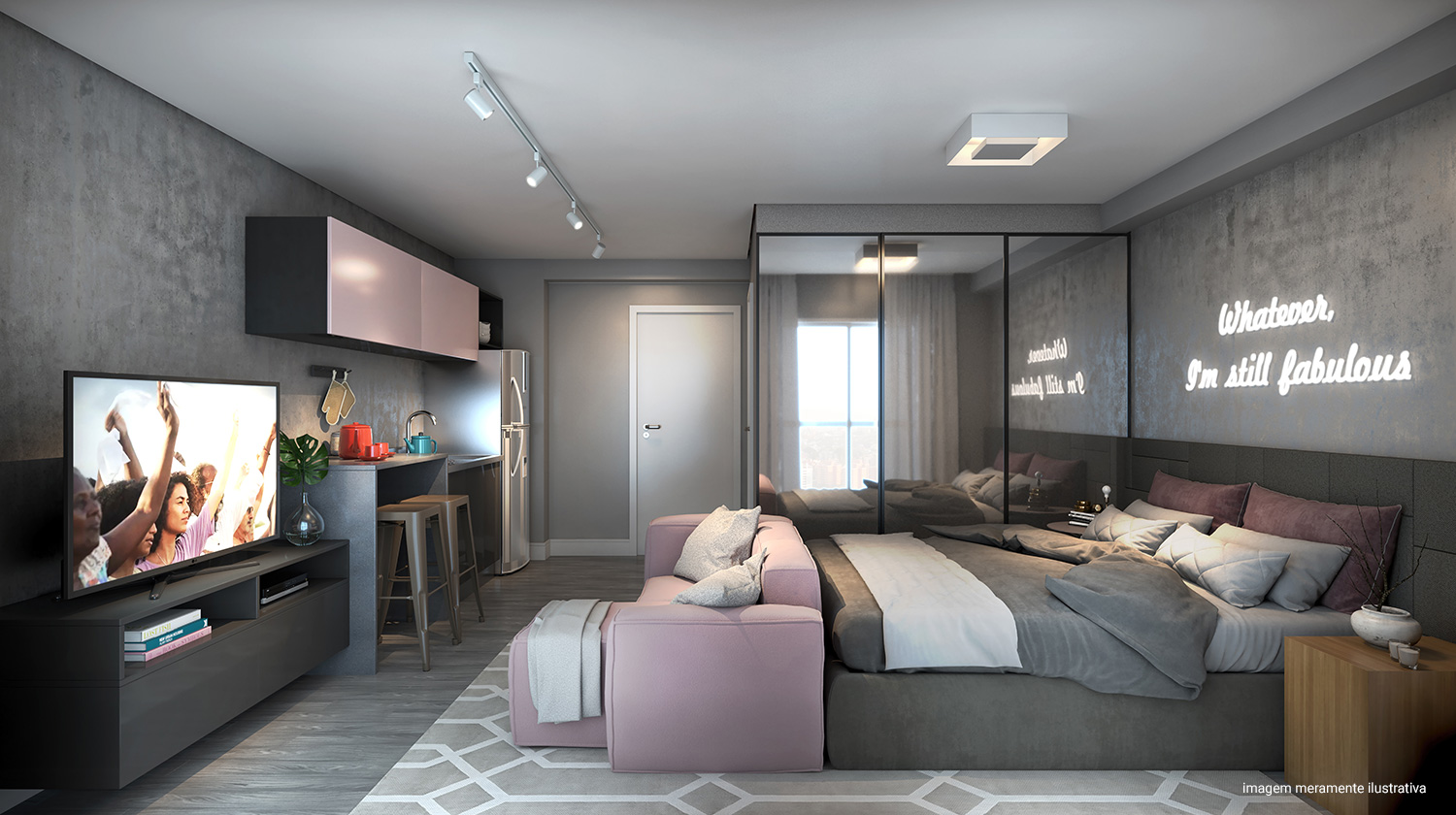 02 Dorms, sala integrada à cozinha americana, banheiro